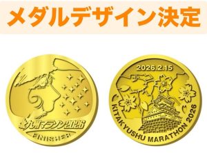メダルのデザインのデザイン大公開! 北九州マラソンを象徴するあのデザインと桜舞う小倉城がそびえる北九州ならではのデザインとなっております。 とてもクールな仕上がりです。 ぜひ、完走目指して頑張ってください!