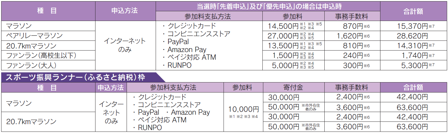 当選者(ペアリレーマラソンは代表者)は各支払い方法に従って参加料を入金してください。指定期日までに入金がない場合、当選は無効となります。