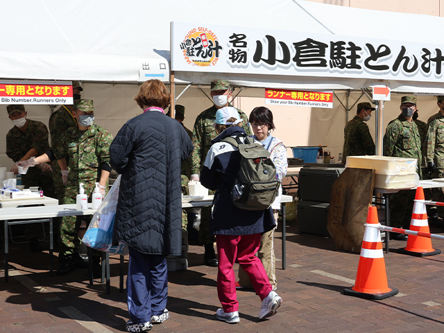 ランナーの皆さんにエネルギーを補給していただくため、スタート会場、コース上6箇所のエイドステーション、フィニッシュ会場で、給食(おもてなしフード)を提供します。